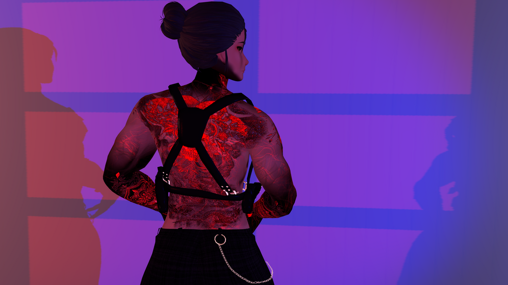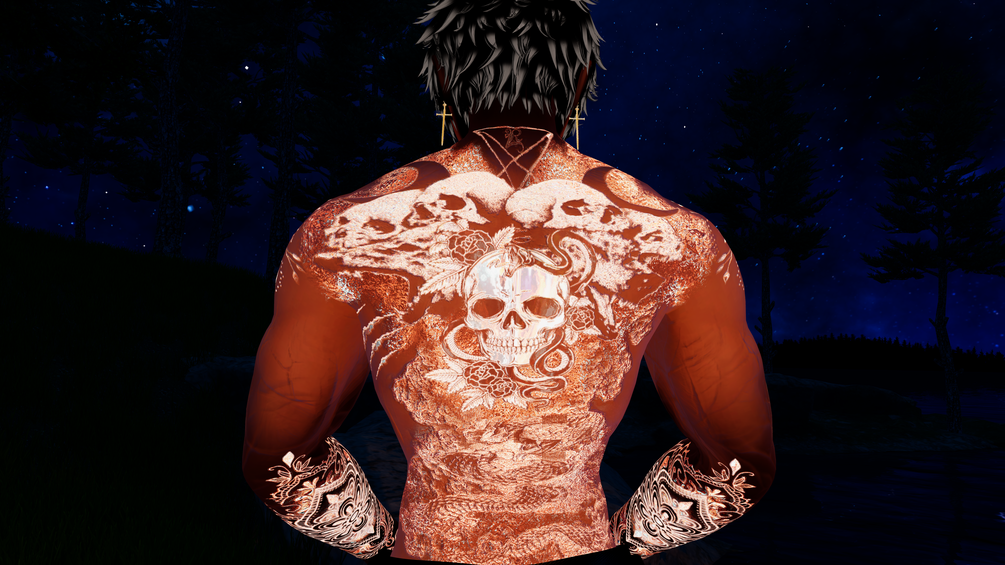 Full-Body Tattoo for Male avatars are made in oriental style with gothic elements.