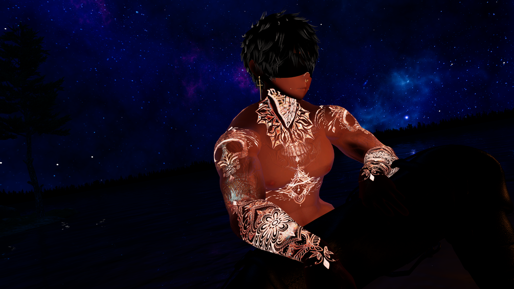 All tattoo textures must be overlaid onto a skin texture of your choice for that base using either an image editor of your choice, or using the Decal function of Poiyomi. (Preview photos taken using Dollymoly male Base with skin textures)