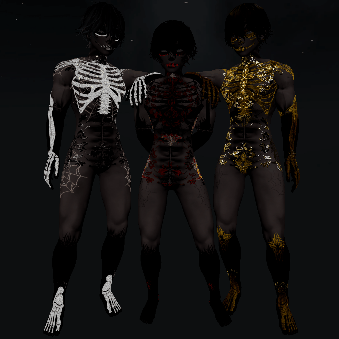 Full-Body and Face Tattoo for Male avatars are made with gothic elements. Made in the style of the Mexican holiday Day of the Dead (El Día de Muertos).